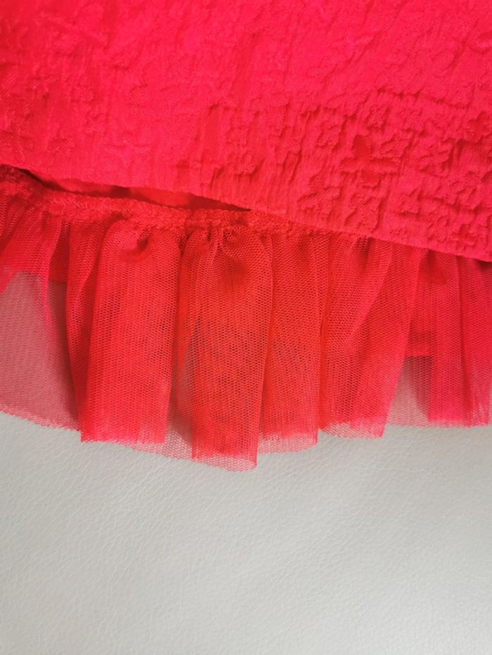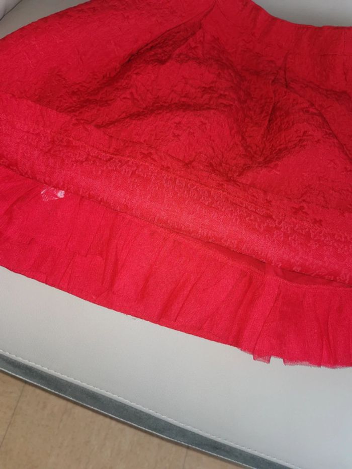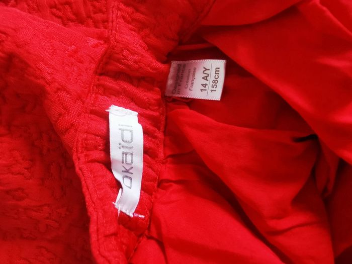 Jupe rouge de la marque Okaidi en taille 14 ans. Cette robe présente un léger voile très discret. En très bon état.