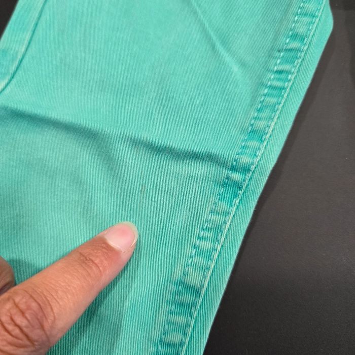 Porté mais reste en bon état Une marque est présente sur le genou gauche et une trace légère sur le genou gauche Voir les photos