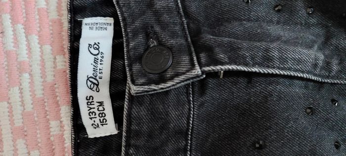 Lot de 3 jupes en jean en état neuf jamais portées : 2 jupes taille XS /34 / 12-13 ans de marque Denim Bershka 1 jupe noire avec strass brillants de marque Denim CO Est 1969 taille 12-13 ans 158 cm.