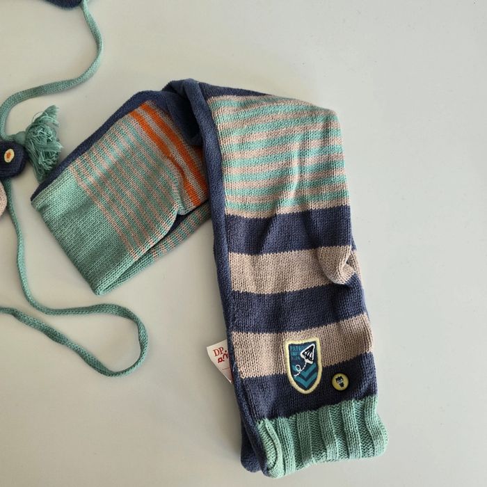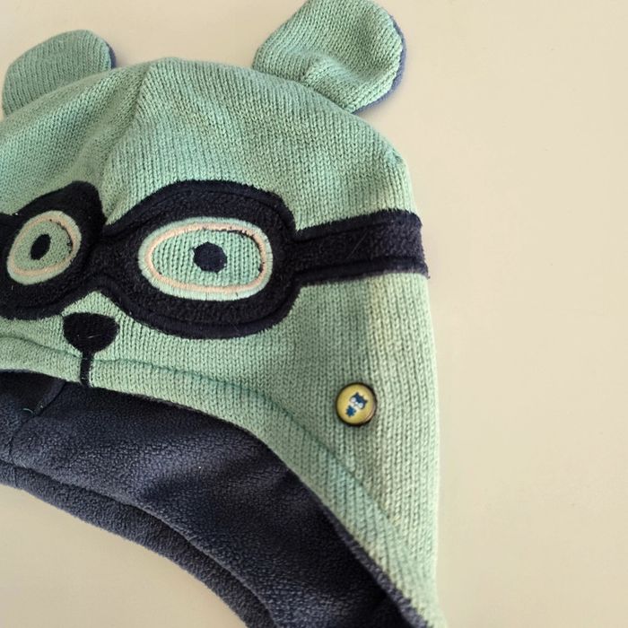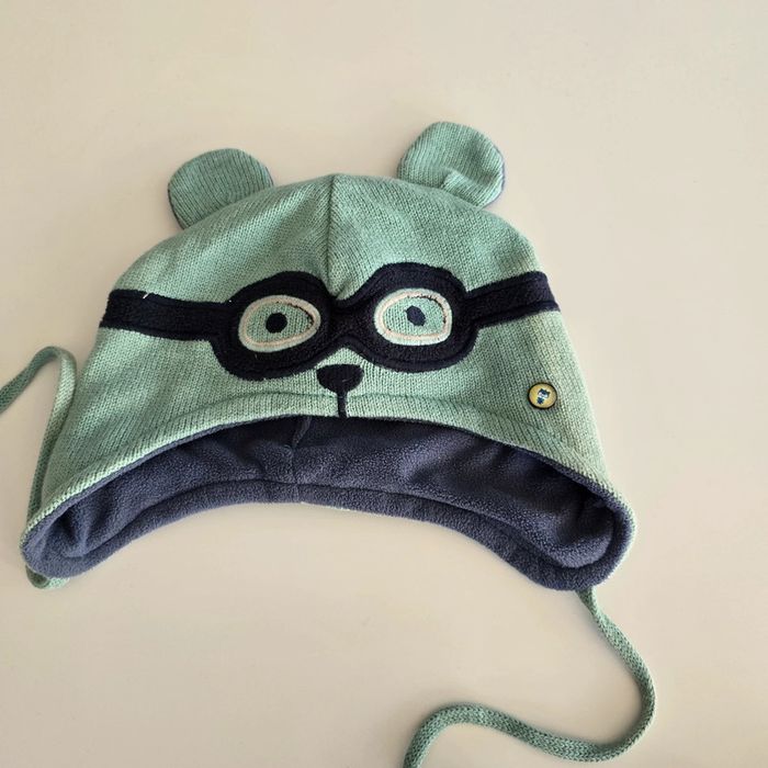 En très bon état car très peu porté Juste une petite décoloration sur le côté droit du bonnet