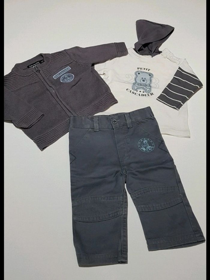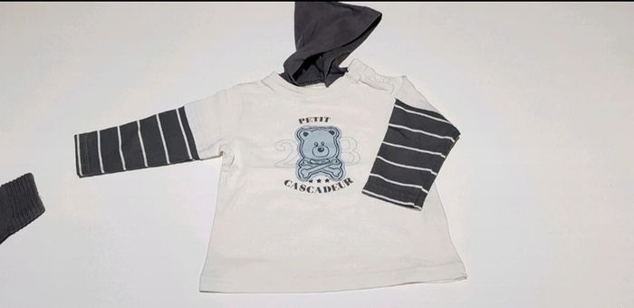 En très bon état Ensemble comprenant 1 pantalon 1 t-shirt manches longues avec capuche A gilet zippé Modèle petit cascadeur Taille 3 mois