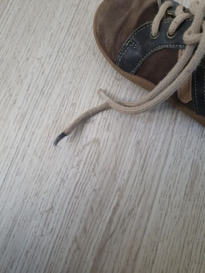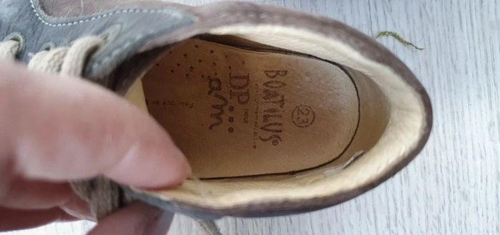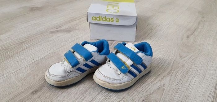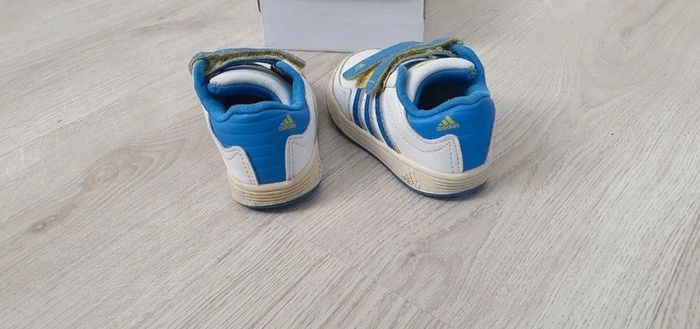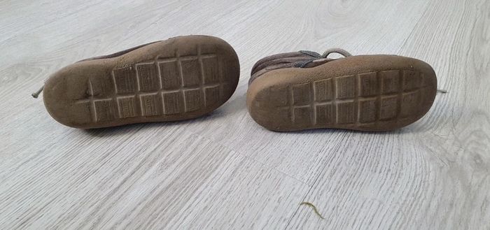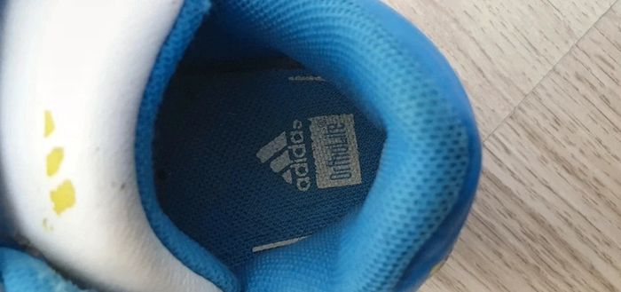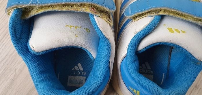 Adidas : nombreuses traces d'usure présentes sur les photos Chaussures montantes en cuir : marque du pareil au même. Elles sont en bon état général Mise à part le lacet et quelques traces d'usure sur le devant de la chaussure Chausson : marque tooti : en Très bon état juste quelques traces sur le motif de devant 5 € l'ensemble