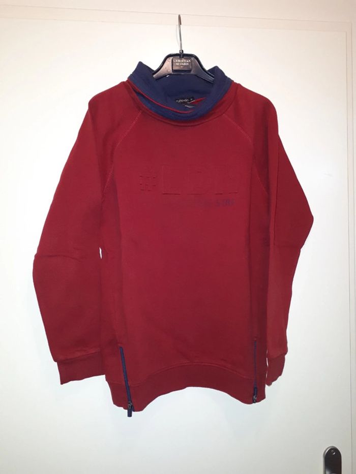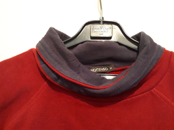 Joli sweat à col modulable rouge très foncé et marine taille 14 ans pour garçon porté un hiver. Regardez mes autres annonces en cours sur mon dressing entier et groupez vos achats pour profiter des remises programmées dès 2 articles achetés.