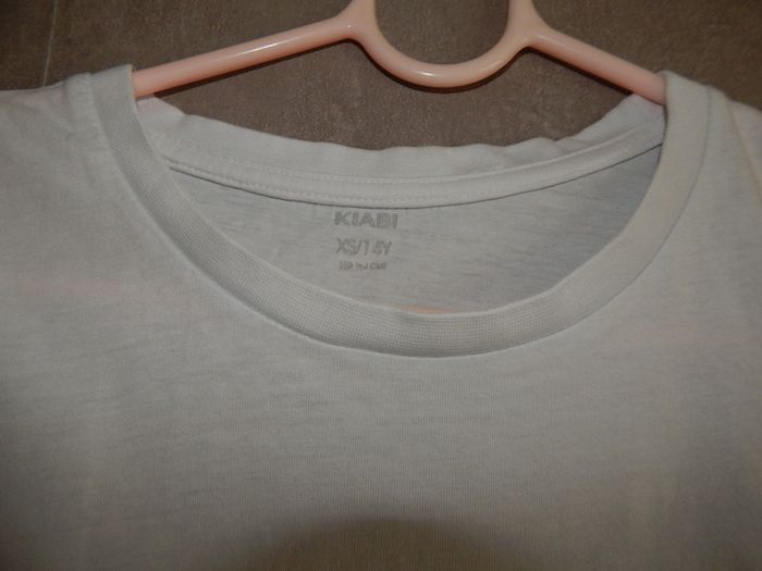 T-Shirt état neuf blanc porté une seule fois pour un concert scolaire. 100% coton. Taille XS 14 ans pour garçon. Poche sur la poitrine utilisable Provenance KIABI