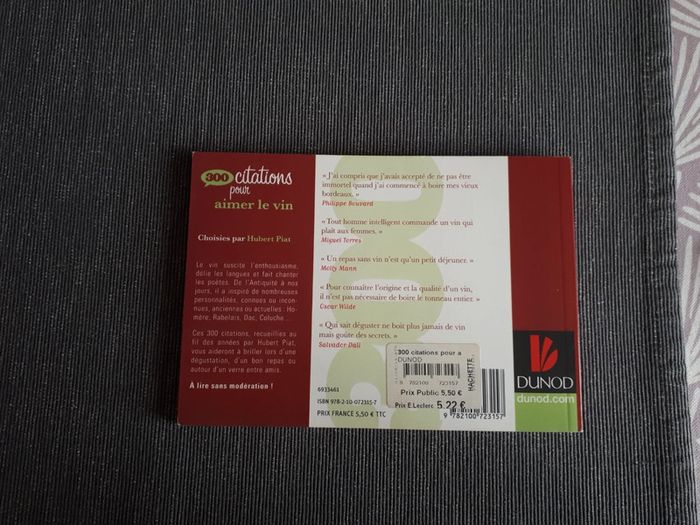 Livre état neuf pour amateurs de vins. Cadeau sympa à offrir pour un dîner ou autre. Regardez mes autres livres en vente et groupez vos achats pour profiter des remises programmées dès 2 articles achetés.