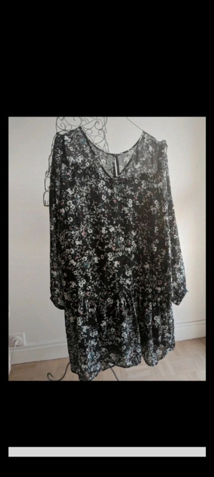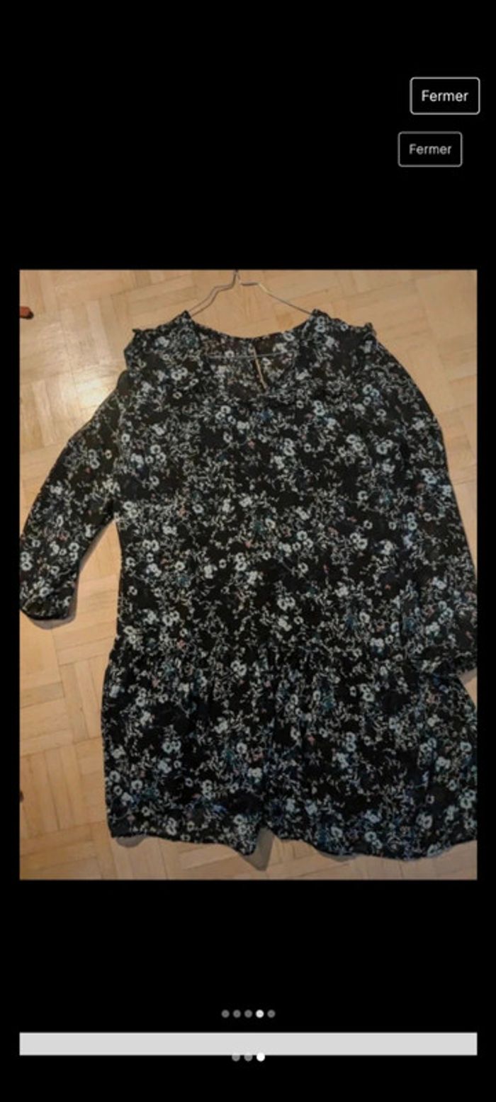 robe fleurie taille 40 parfait état ( juste lavé). Gilet également à vendre dans mon dressing avec gilet manches chauve-souris vert foncé neuf avec étiquette taille S. #femmefredlud73