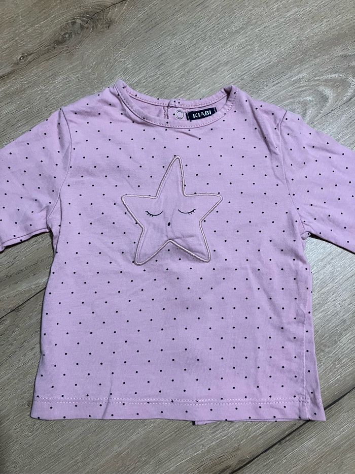 T-shirt à manches longues à pois à motif étoile Fermeture par boutons pression le long du dos Kiabi taille 6 mois Parfait état