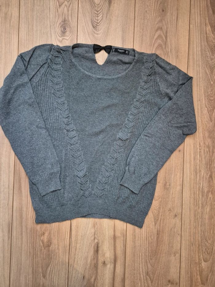 🖤 Pull fin gris Mango taille M détails nœuds au dos - photo numéro 1