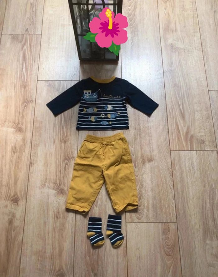 Ensemble en très bon état composé d’un haut manches longues, d’un pantalon et des chaussettes assorties #rivat36mois #ensemble #ensemblegarçon #ensemblegarçon6mois