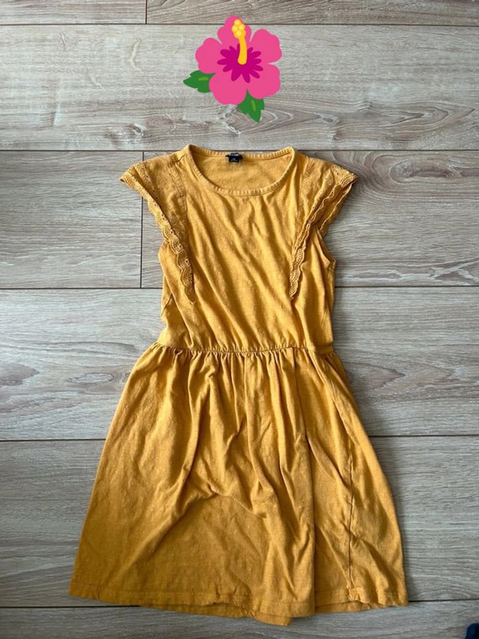Robe manches courtes en coton jaune moutarde en très bon état #rivat38ans #robe #robeété #robeete8ansfille #kiabifille #kiabifille8ans #robekiabi #robekiabifille8ans