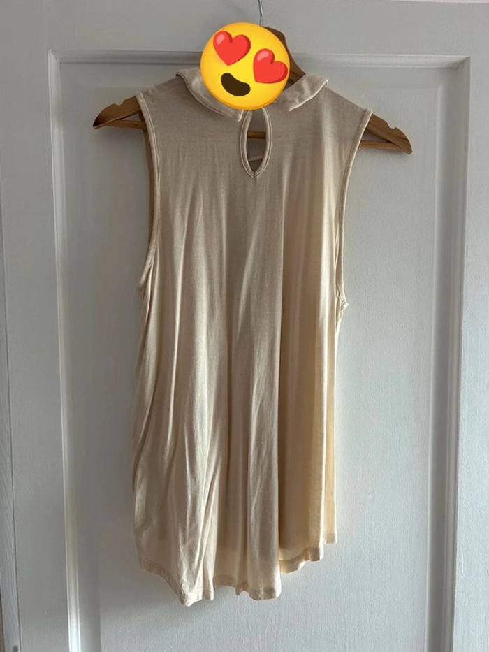 T-shirt sans manches avec col couleur beige en très bon état en coton #rivat3femme40 #primark #primark40 #tshirtprimark40 #debardeurprimark40