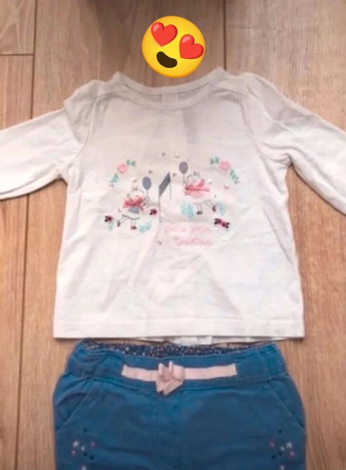 ensemble état neuf car lavé mais non porté composé d’un haut blanc manches longues en coton et un pantalon bleu lavande #rivat312mois #ensemble #ensemble12mois #ensemble12moisfille #sergentmajor #sergentmajorfille #sergentmajor12mois #sergentmajor12moisfille