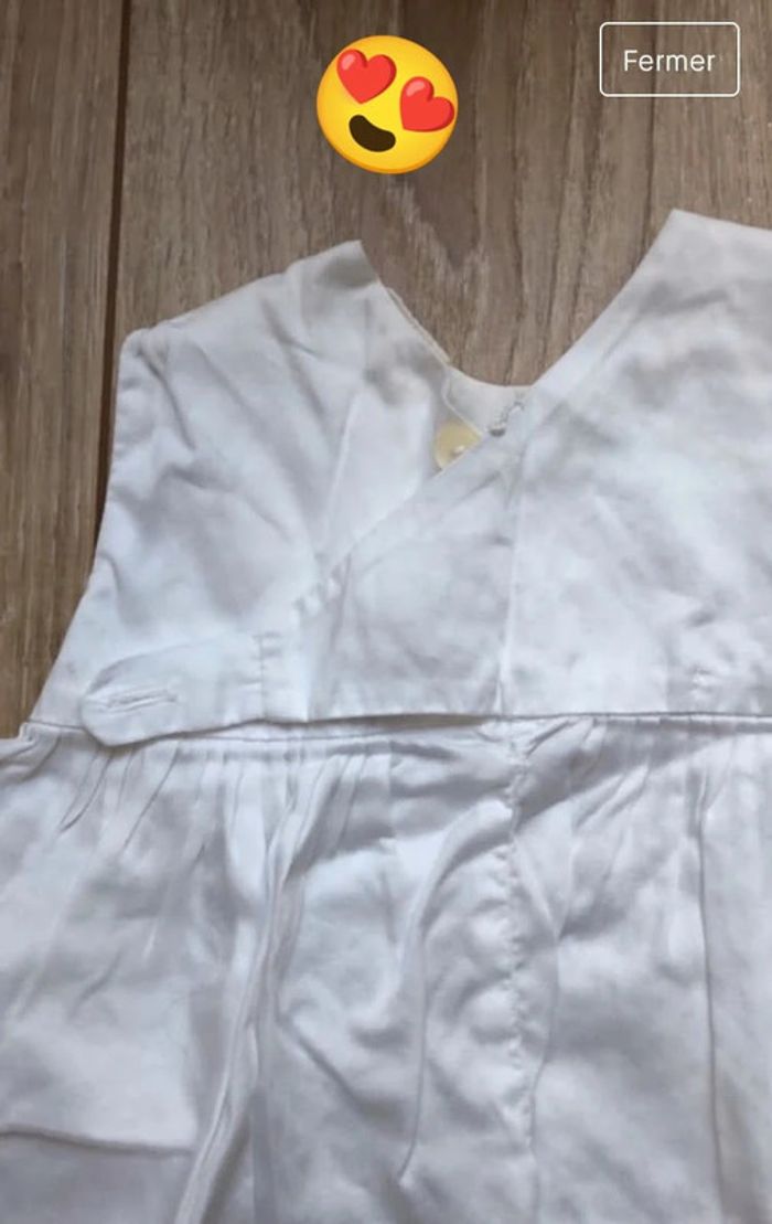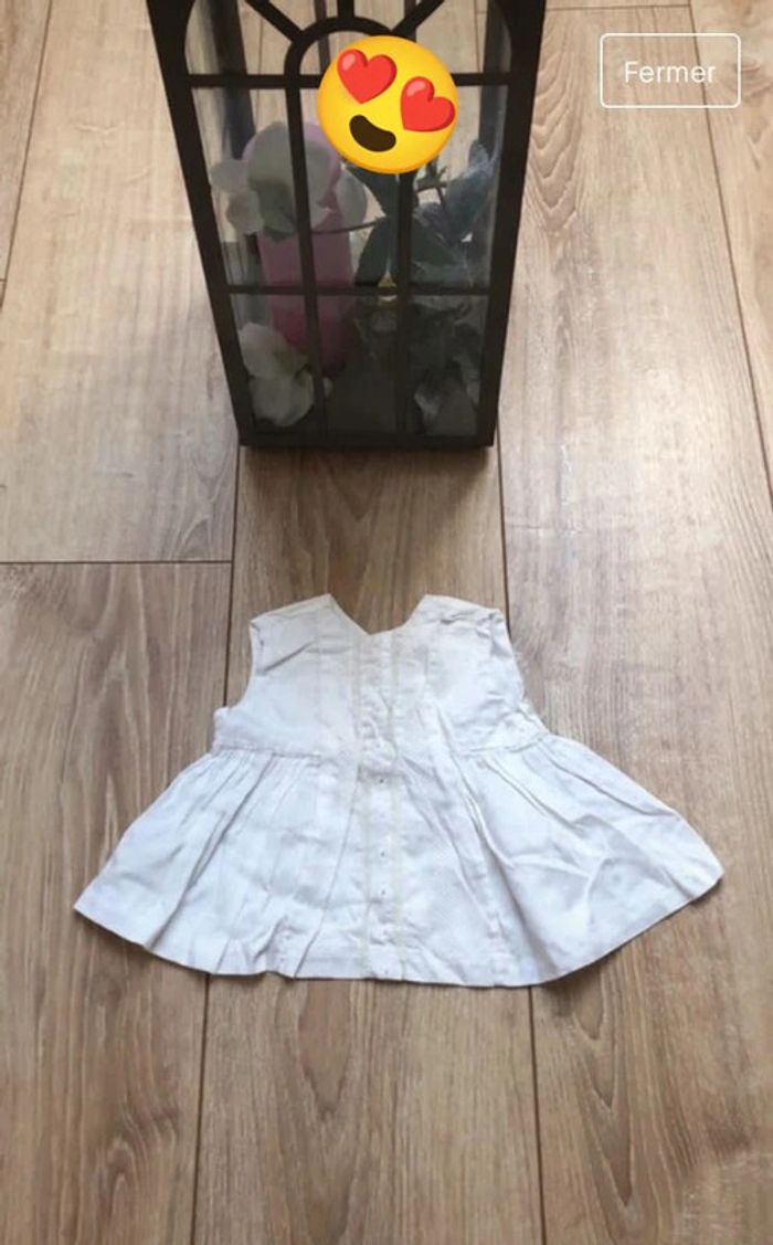 robe blanche sans manches vintage, en coton, en très bon état, ajustable dans le dos grâce à des boutons #rivat33mois #robefille3mois #robeblanche3mois #robeete3mois