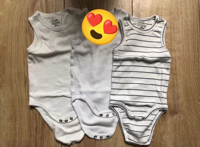 lot composé de 3 bodies sans manches en coton en très bon état #rivat39mois #bodie #bodie9mois #kiabi #bodiekiabi #bodiekiabi9mois