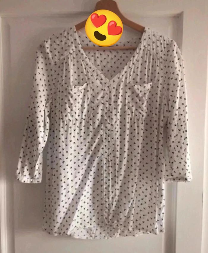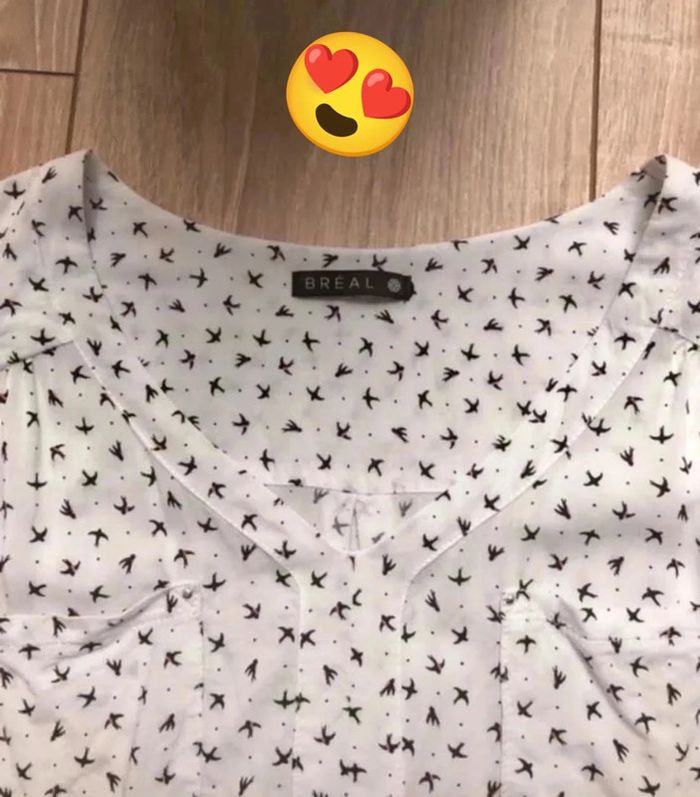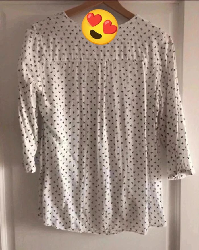 Blouse blanche avec motifs hirondelles manches 3/4 en très bon état #rivat3femme38 #breal #blouse #blousefemme #blousefemme38 #blousebreal #blousebreal38 #breal38