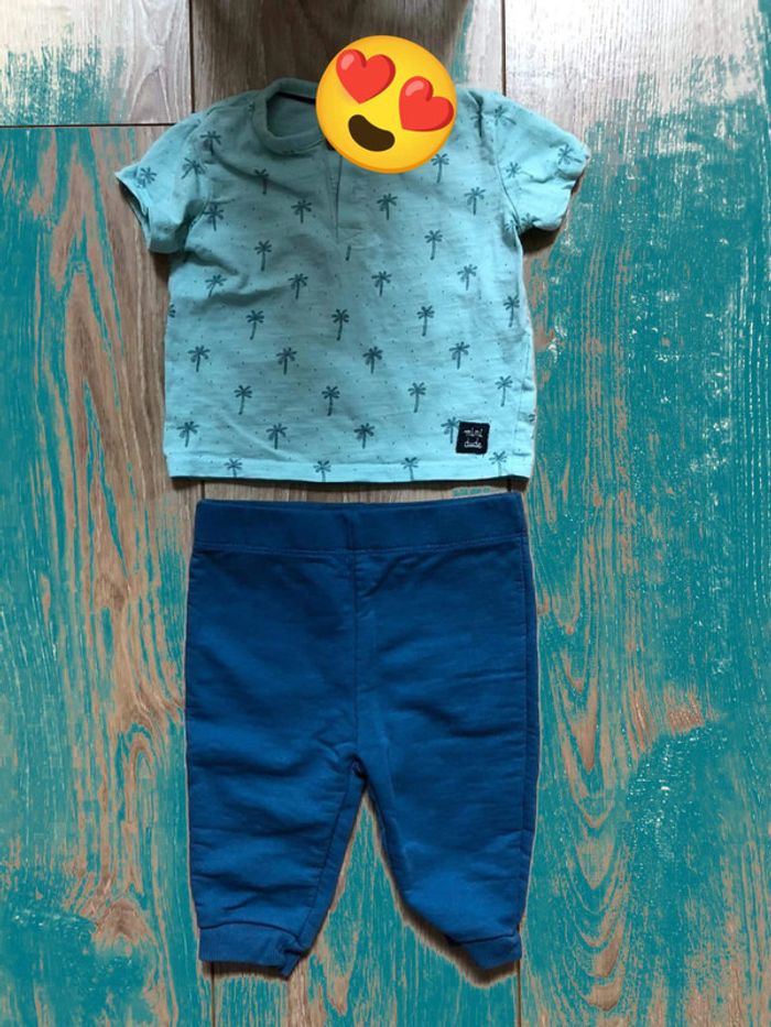 ensemble 6mois en très bon état composé d’un haut manches courtes vert d’eau en coton et d’un pantalon de jogging bleu en coton #rivat36mois #kiabi #kiabi6mois #kiabi6moisgarcon #tex #tex6mois #tex6moisgarçon #ensemble #ensemble6mois #ensemble6moisgarçon