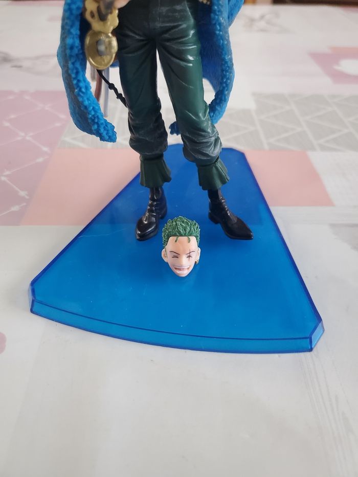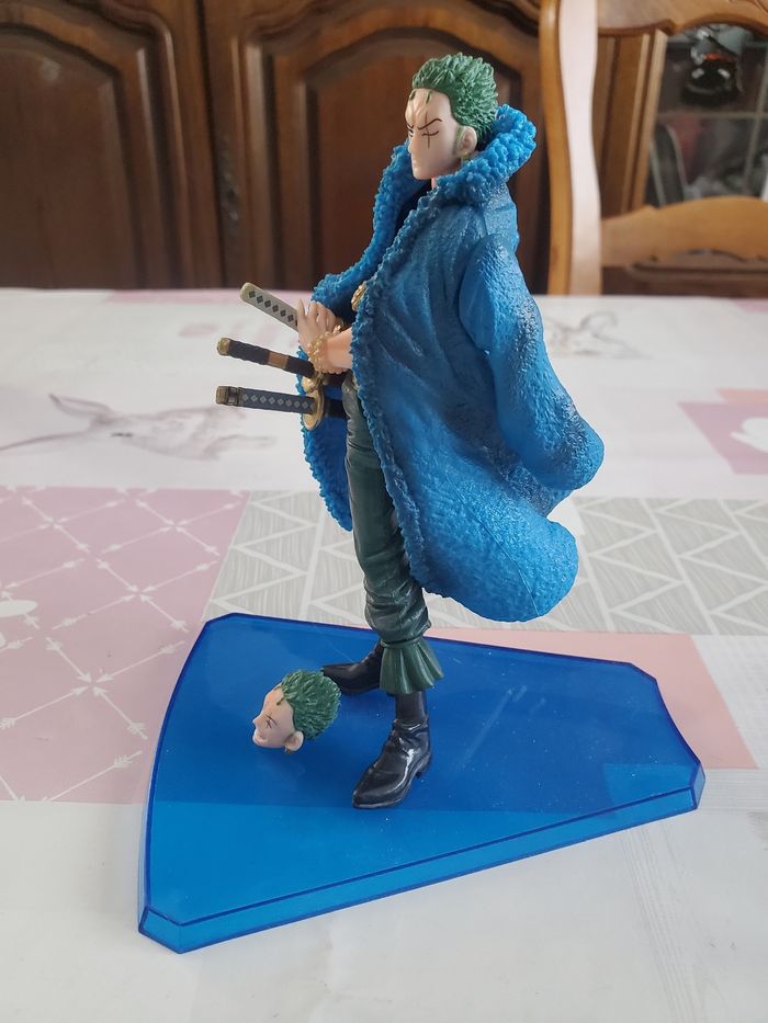 Figurine one piece zoro ses t'une officielle pour les 20ans anniversaires en excellent état tête interchangeables 14 cm de hauteur sans sa boîte d'origine.