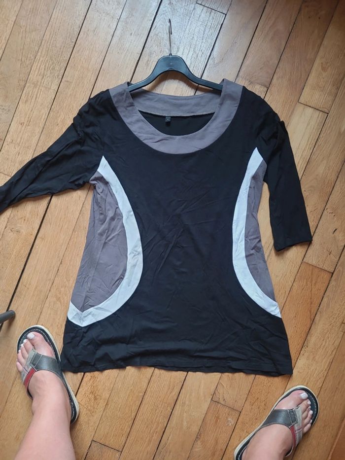 ⬇️mes autres annonces pour femme en taille 42 👉 #cg89femme42 😁 réductions activées des 2 articles ! Une tunique bicolore noire et grise avec un col rond et des manches longues. Elle mesure 45 cm aux épaules, 53 cm aux aisselles et 74 cm de longueur. Elle est légèrement extensible 4%. bon état, taille 42 #tunique #tshirt #manchelongue #taille42 #bicolore