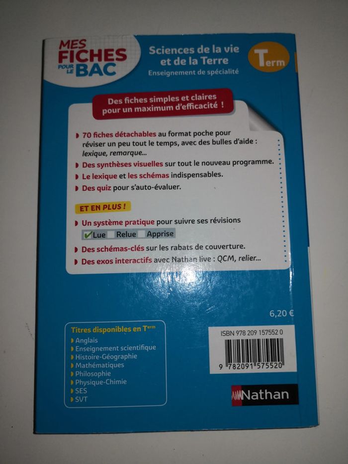 📌 Réductions dès 2 articles achetés! 📌 Mes autres articles du même thème: #sofy35livres DESCRIPTION DE L'ARTICLE ➡️ Fiches détachables, quizz et synthèses visuelles, lexiques et Points-clés, pour réviser et mémoriser efficacement ! Pour enseignement de spécialité, nouveau bac. Beaucoup d'autres "prépa bac" en vente, regardez mes autres annonces. #sofy35