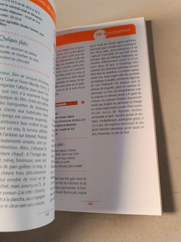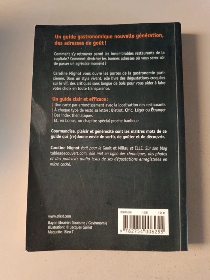 Le guide des bonnes tables à Paris bistrot et terroir gourmand, cuisine d'ailleurs, assiette légère et restos chic. Prix neuf 10 €. Voici le lien pour voir tous mes livres pour réduire les frais de port et avoir des réductions automatiques par lot de 3 ou 5 : #romain75015_Livres et #romain75015_Paris et #romain75015_Cuisine. Envoi rapide et soigné, bien protégé pour le transport.
