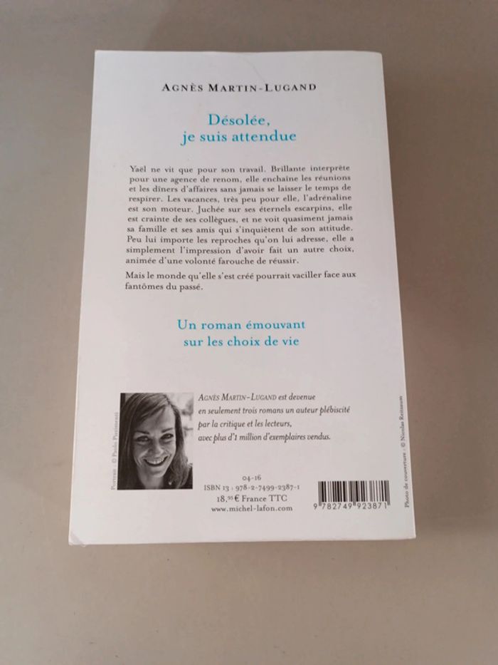 Désolé je suis attendu Agnès Martin lugand. Voici le lien pour voir tous mes livres : #romain75015_Livres. Poids : 500 grammes. Envoi rapide et soigné bien protégé pour le transport.