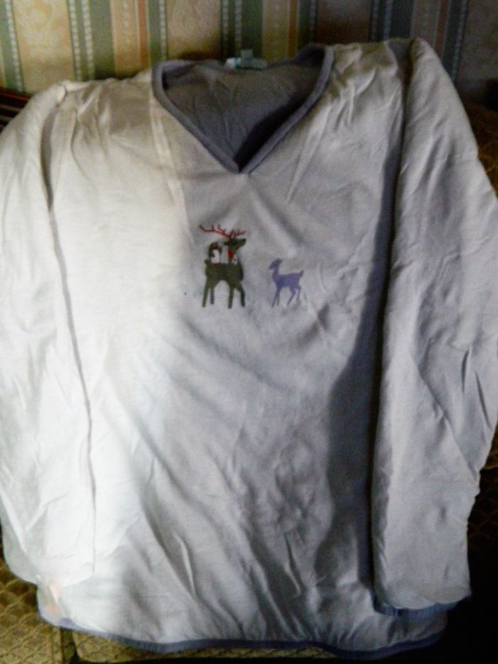 VESTE SUR PYJAMA ICI ET MAINTENANT T 38 A ENFILER // EN BON ÉTAT // BLANC // COTON IMPRESSION BICHE SUR LE DEVANT