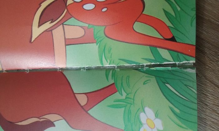 Le livre (édition de 1988), tout comme Bambi, n'est plus tout jeune! Certains bas de pages sont abîmés (cf 2 dernières photos) mais le contenu reste le même!