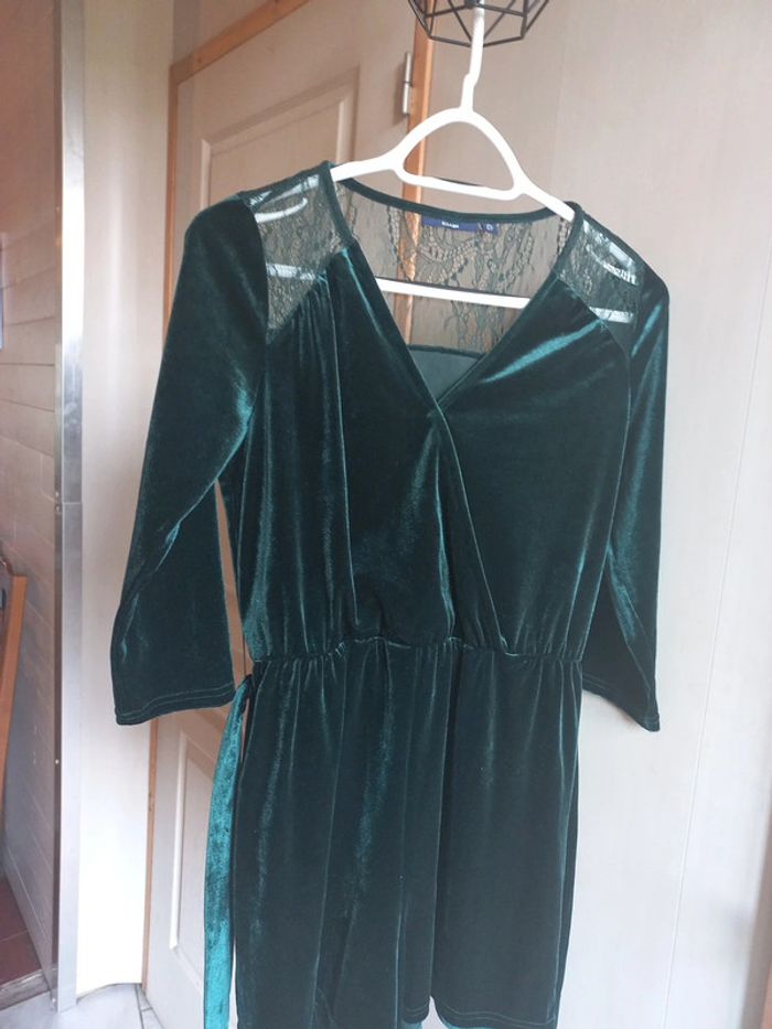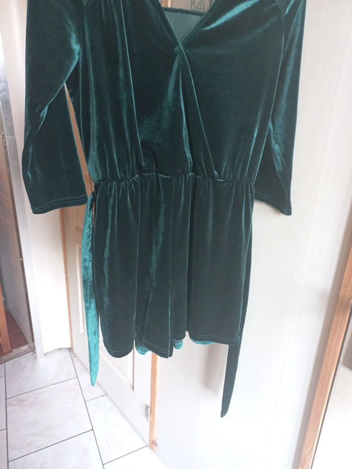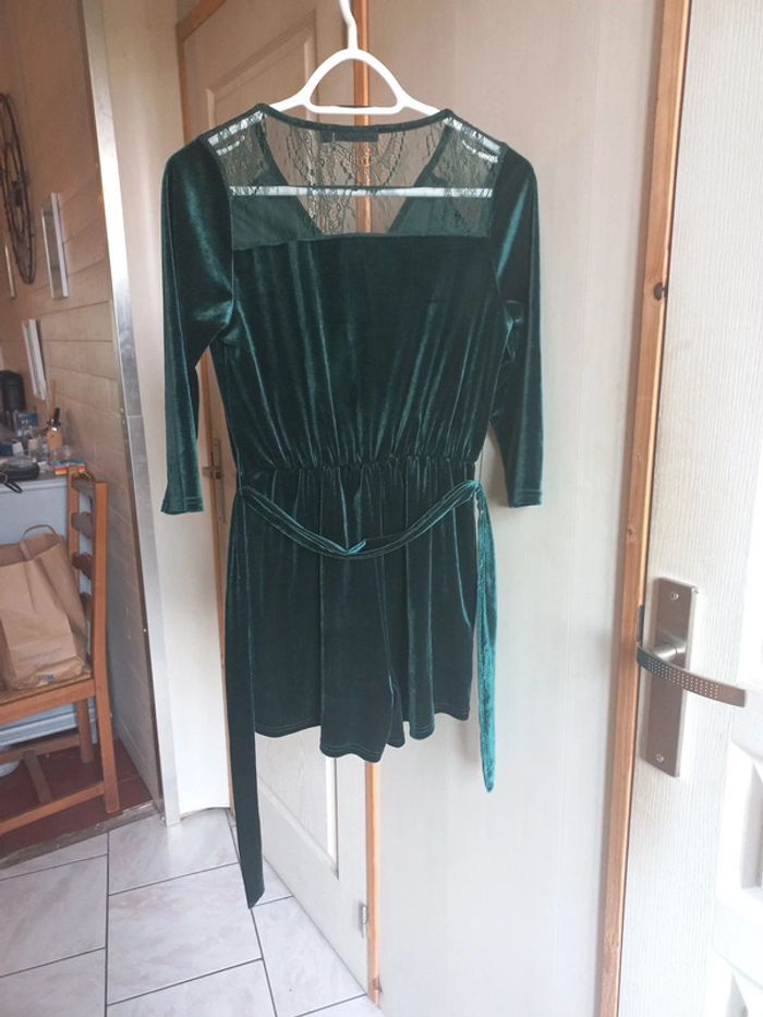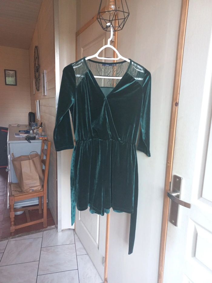 Combishort velours Vert sapin Taille 36 Kiabi Dentelle Ceinture Manches 3/4