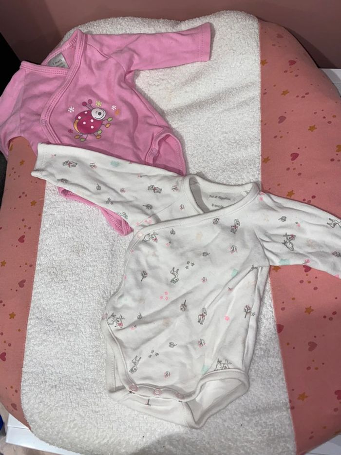 2 body manche longue le rose 1 mois le deuxième 3 mois mais taille comme un body de 1 mois