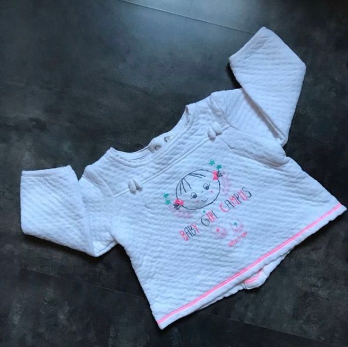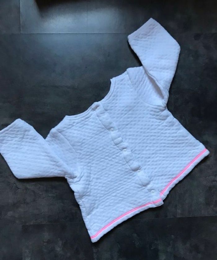 sweat pull aspect gaufré, coutures rose fluo Taille 6 mois ORCHESTRA BABY