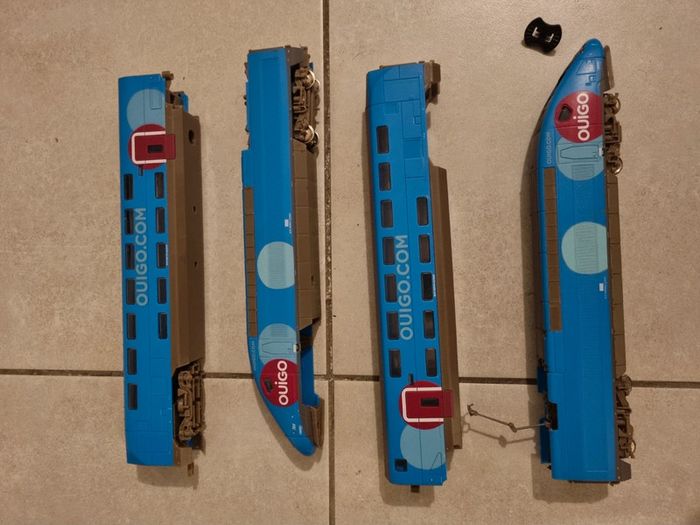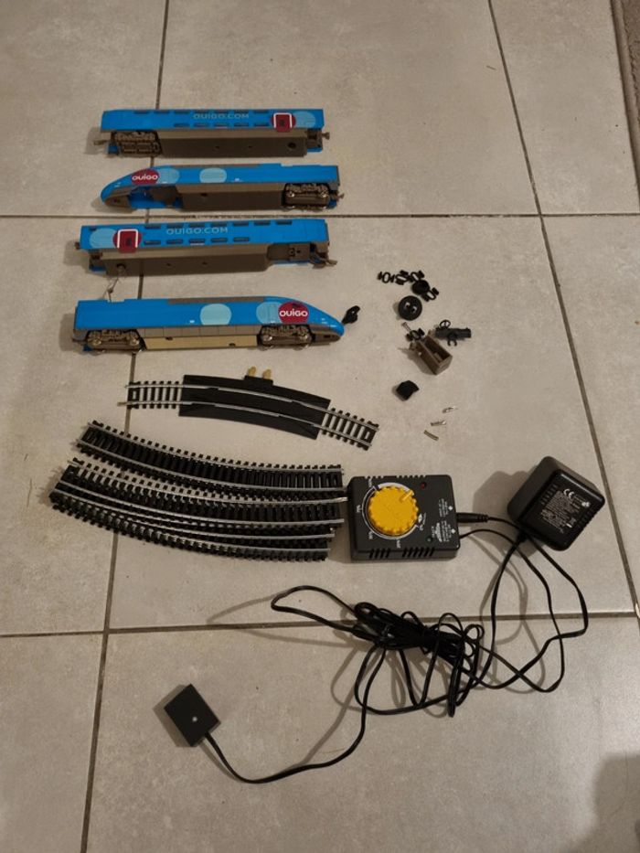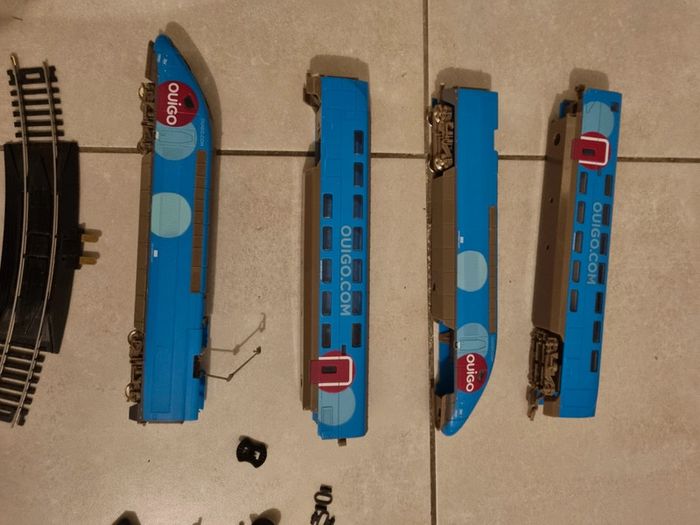 Beaucoup de jouets en vente sur mon profil : #JouetsPascalb78 (négociation ou remise sur lot) Train Mehano Ouigo plus en état car il manque notamment les roue sur plusieurs wagons sauf un wagon tête ou il y a toutes les roues (voir photo). L'adaptateur fonctionne très bien. 11 rails. Le train n'est pas complets et pas en état (photo 4) donc à acheté si vous chercher des pièces, ou juste l'adaptateur car le votre est cassé ou si vous souhaitez le réparer ou seulement l'exposer. #ouigo #mehano #train #maquette #jouets #JouetsPascalb78