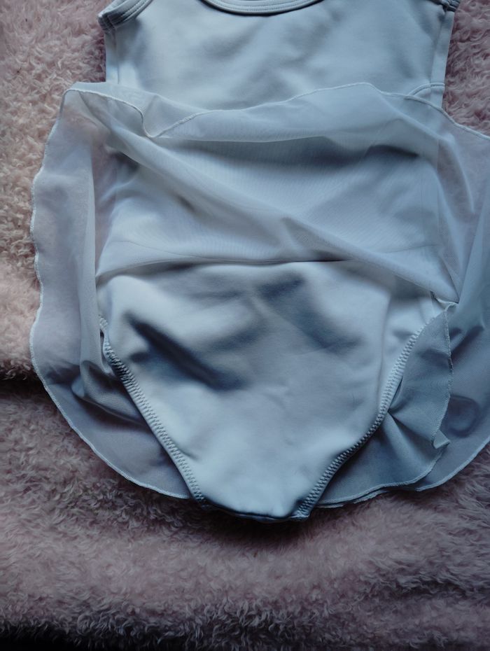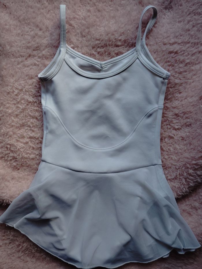 Justaucorps blanc danse classique taille 7 - 8 ans qu'on vient à une petite fille de 6 ans car ça taille petit. Marque Decathlon, il manque l'étiquette.