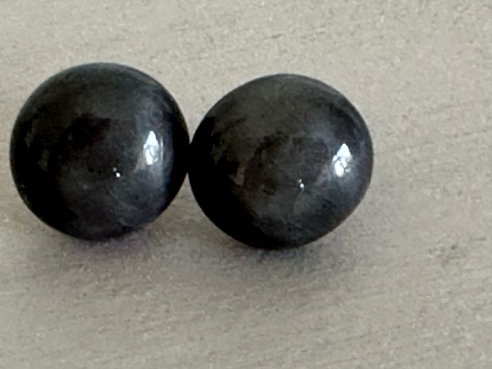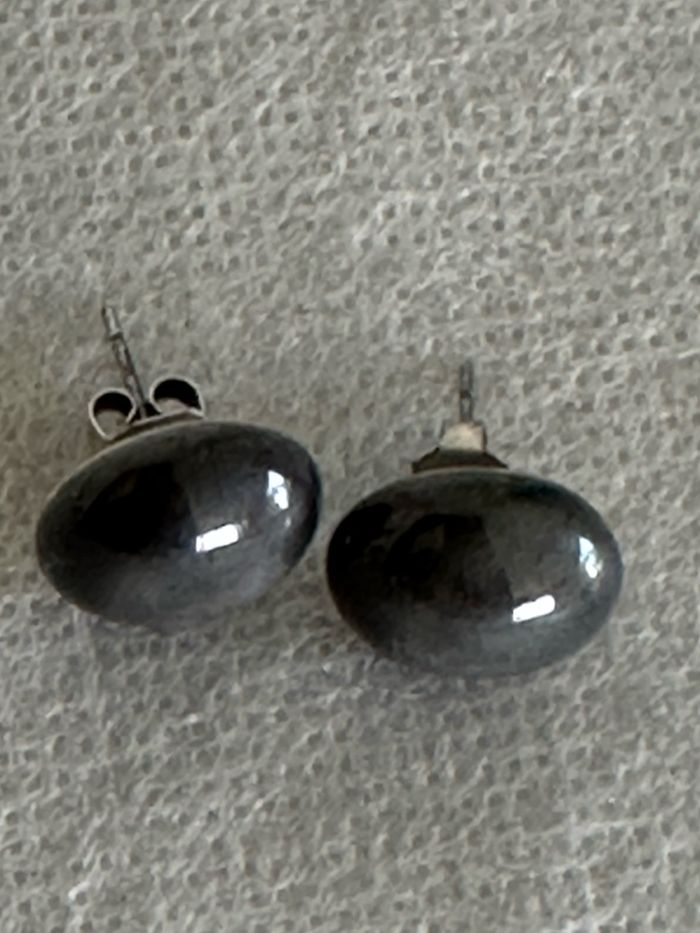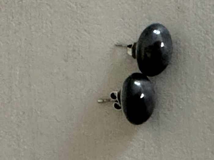 Boucles d'oreilles rondes élégantes style hématite en diamètre 8 mm environ.