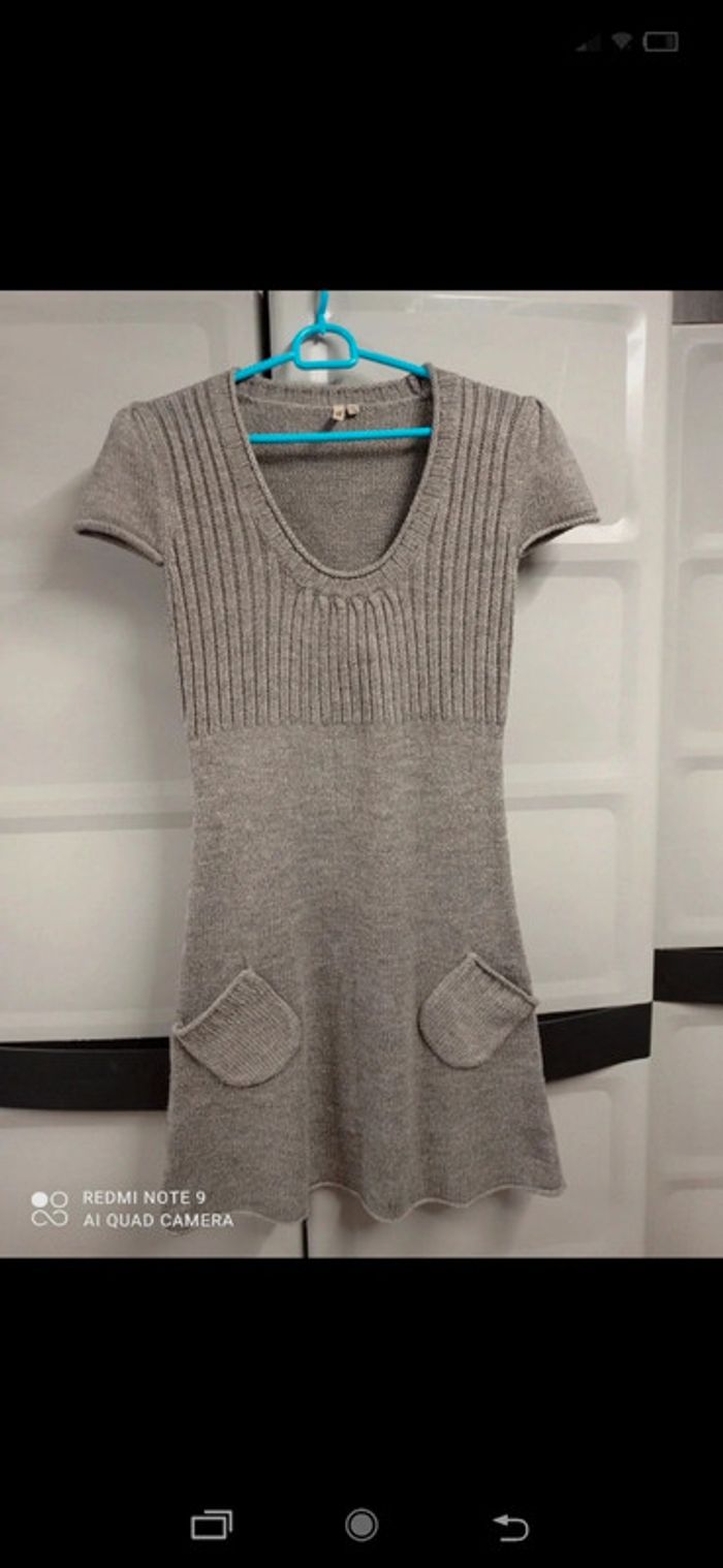 Robe courte, couleur grise, peut être portée en tunique sur un legging. Petites manches courtes, 2 poches devant. 100% acrylique Marque SPOT, taille 34/36 En excellent état #spot #femme3436 #spot3436 #ado3436 #robespot3436 #tuniquespot3436 #robe3436 #tunique3436 #robeenmaille3436 #femme3436