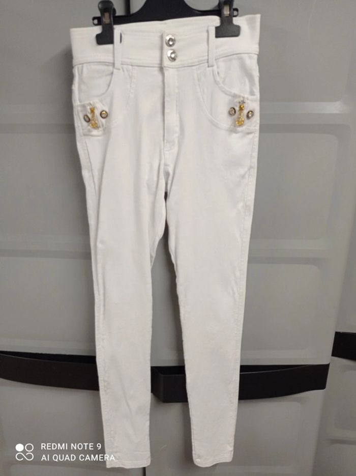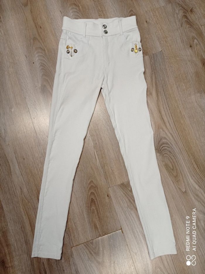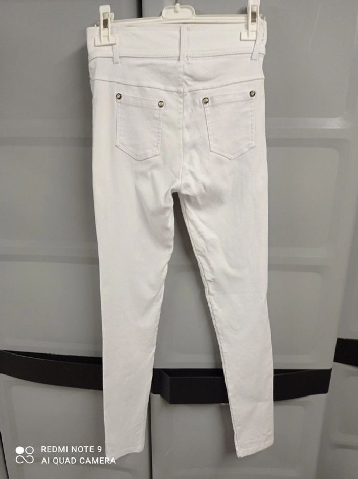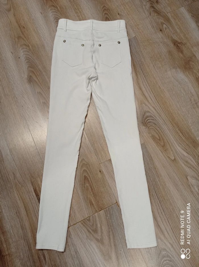 Legging blanc, façon pantalon : poches devant et dos, passants pour ceinture. Fermé par 2 boutons strass et un zip, jolis détails avec breloques dorées aux poches devant. Tissu très extensible : 45% coton 50% polyester 5% spandex. Taille M/L (38-40). En très bon état. #leggingblanc3840 #legging3840 #pantalonblanc3840 #femme3840 #ado3840 #pantalonado3840 #leggingado3840 #pantalonfemme3840 #skinny3840 #pantalonajusté3840 #basfemme3840 #femmeété3840 #blancfemme3840 #blanc3840 #leggingml #femmeml