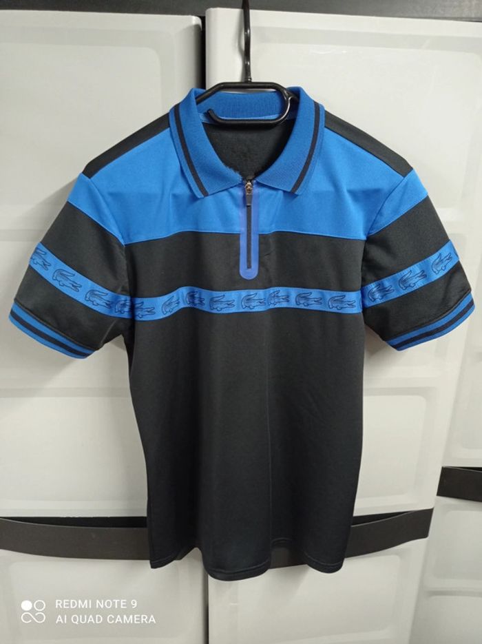 Polo noir et bleu roi, col zippé. Séchage rapide, sans repasser. 95% polyester 5% coton Taille M Excellent état #polohomme #polohommeM #polohomme40 #polosansrepassage #polosechagerapide #homme40 #polo40homme #polozippé #polo40 #polocrocodile #crocodile