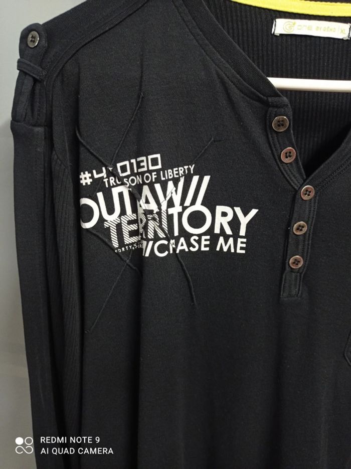 Tee-shirt à manches longues noir, en coton, https://www.20minutes.fr/sante/3301147-20220602-sante-mentale-peur-abandon-difficulte-gerer-emotions-impulsivite-souffrez-peut-etre-trouble-borderline des manches tissu côtelé. Écritures blanches floquées sur la poitrine côté droit avec surpiqués quadrillées à l'endroit du flocage. Marque GEMI, taille XL. En très bon état. #gemo #gemoxl #gemoxlhomme #teeshirtmancheslonguesxl #teeshirtmancheslongueshommexl #teeshirtmancheslonguesgemoxl #hommexl