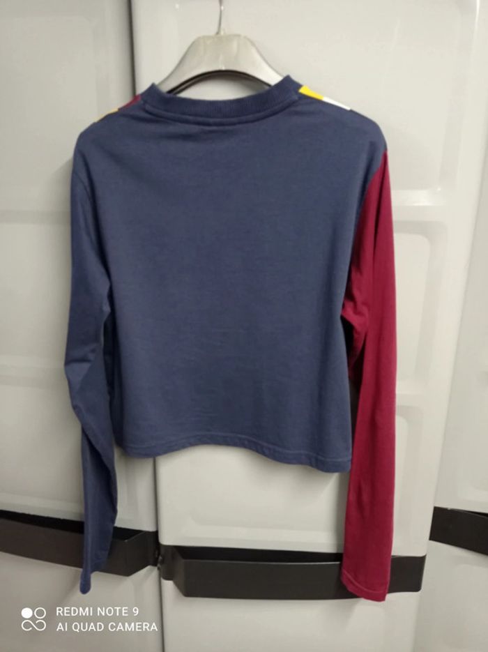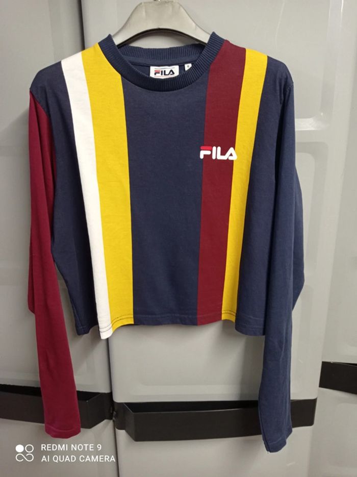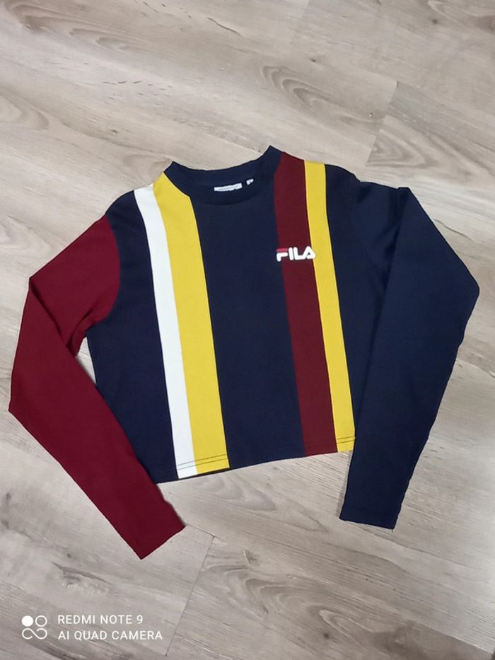 Croc-top multicolore (marine/bordeaux/jaune/blanc), en coton. Hauteur (épaule au bas du croc-top) 45cm Longueur manche 64cm. Marque Fila. Taille S Comme neuf, porté une seule fois. #fila #filatailleS #ado36 #adofila36 #filaado #fila36 #croctop36 #croctopfila36 #teeshirtmancheslongues36 #teeshirtmancheslonguesfila36 #sportswear #sportwear36