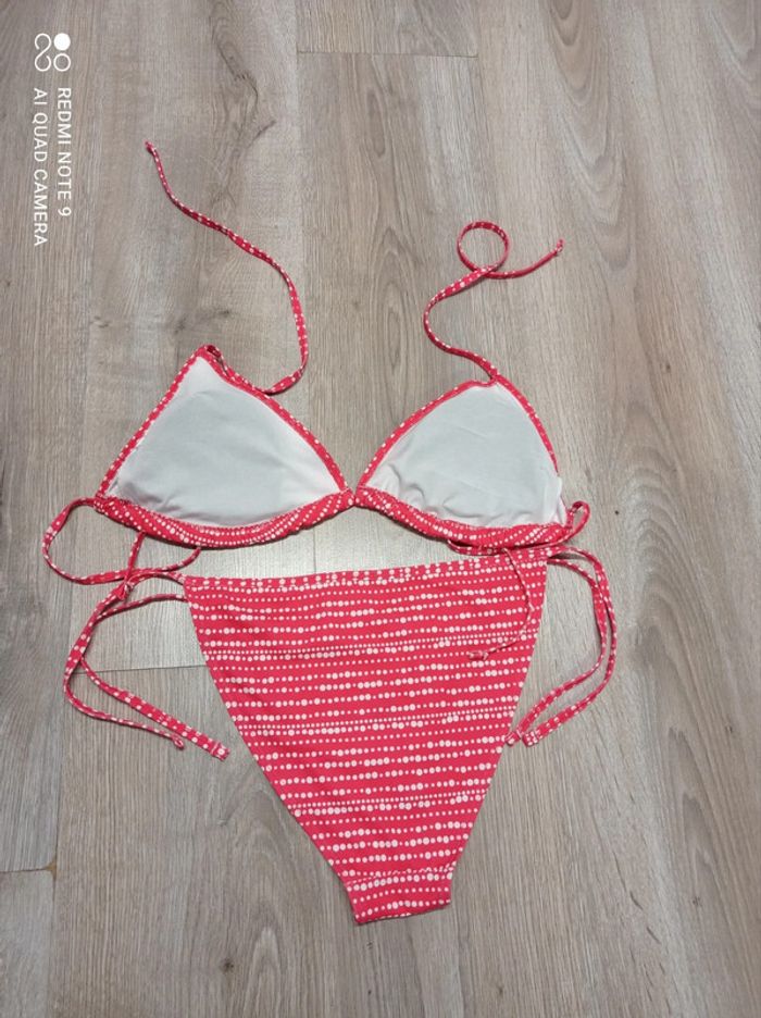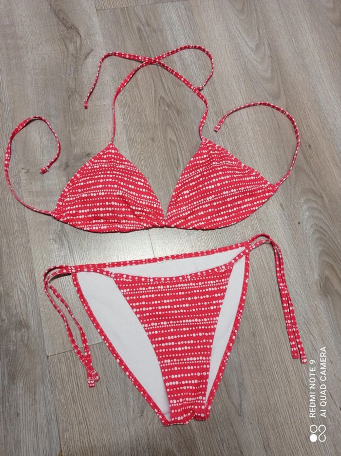 Maillot de bain 2 pièces couleur rouge et blanc. Haut forme triangle avec coussinets amovibles, se noue derrière le cou et derrière le dos. Bas échancré se noue sur les côtés. Taille 42/44 NEUF SANS ÉTIQUETTE Jamais porté. Acheté sur un marché "en vrac" (petits fils tirés sur la doublure blanche à l'intérieur des bonnets, ce qui ne se voit absolument pas). #bikini #bikini4244 #bikini42 #bikini44 #maillotdebain42 #maillotdebain44 #maillotdebain4244 #maillotdebain2pieces42 #maillotdebain2pièces44 #maillotdebain2pièces4244 #femmeété4244 #femmeété42 #femmeété44 #plage4244 #plage42 #plage44 #natationfemme #natation4244 #natation42 #natation44