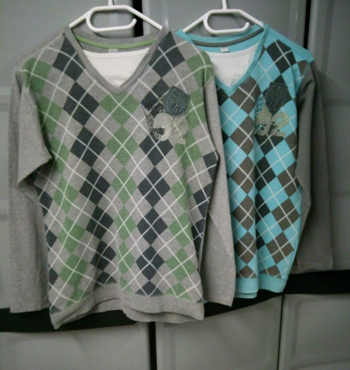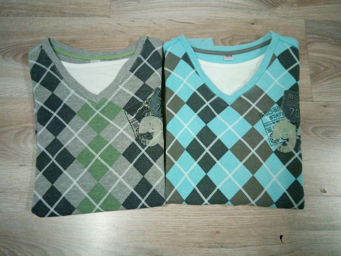 Lot de 2 tee-shirts manches longues, effet 2 en 1, façon jacquard. 100% coton. 1 tons gris + 1 tons turquoise. Taille 18 ans/M Très bon état #teeshirtmancheslongues18ans #teeshirtmancheslonguesm #hommem #homme18ans #garçon18ans #teeshirtjacquardm #teeshirtjacquard18ans #teeshirtmanchedlongues170/176 #zeeman18ans #zeemanhommem #garçon170