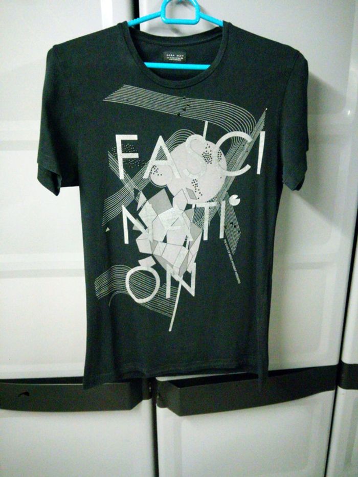 Tee-shirt noir, motifs gris et argentés + strass. Marque ZARA MAN, taille S. Très bon état. #teeshirtzara #teeshirtzaraman36 #teeshirtzaramans #teeshirthommes #teeshirthomme36 #teeshirtnoiretargent #teeshirtnoiretargenthommes #teeshirtnoiretargenthomme36 #zaraman36 #zaramans