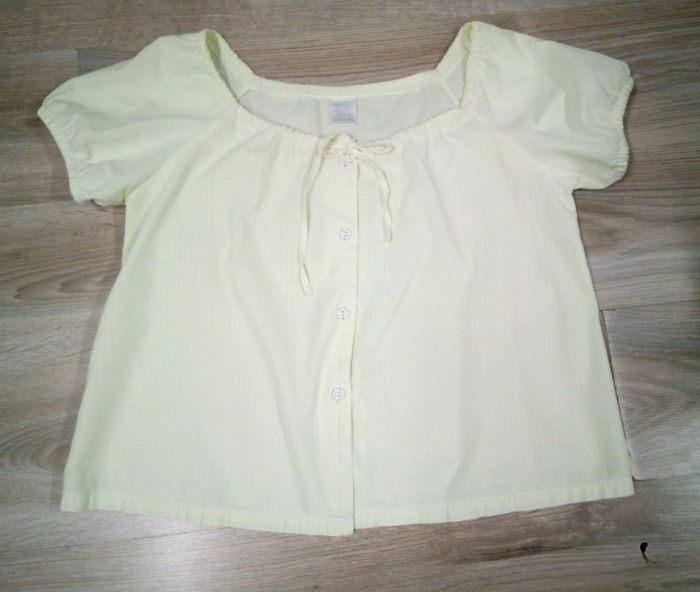 Jolie blouse Vintage, taille 44/46 Coloris jaune pâle, détails couture bas de la blouse, boutons fleurs, élastiquée aux bras, encolure réglable par liens de serrage. Peut se porter de différentes façons (voir photos) En très bon état. #blouse44 #blouse4446 #blouseété44 #blousevintage #vintage4446 #chemisierete4446 #hautetefemme44 #hautétéfemme46 #blousemanchesballon44 #manchesballon44 #blouseepaulesdecouverte #hautfemme4446 #vetementétéfemme4446 #femme4446 #blousemanchescourtes44 #blousemanchescourtes46