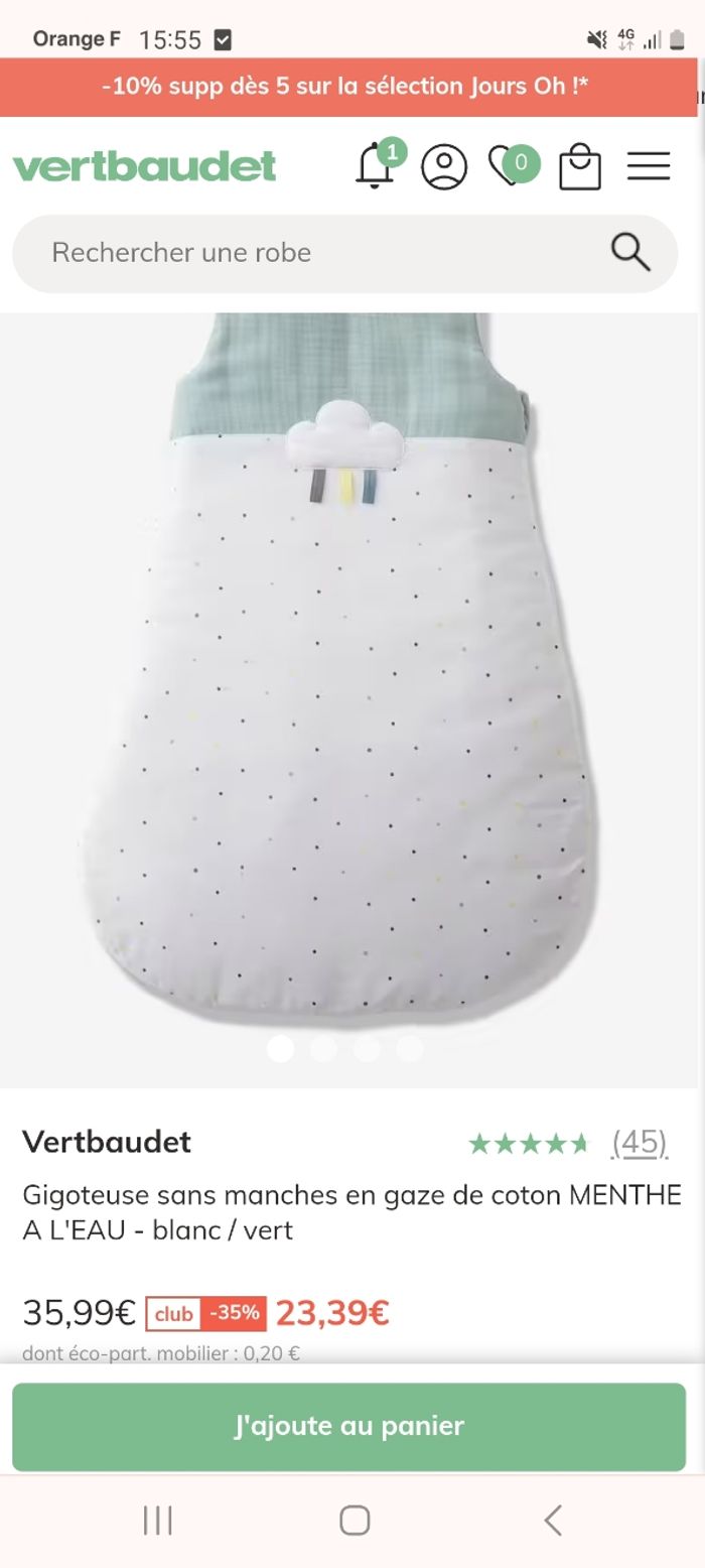 3 gigoteuses Verbaudet / 0-6 mois / gaze de coton / très bon état