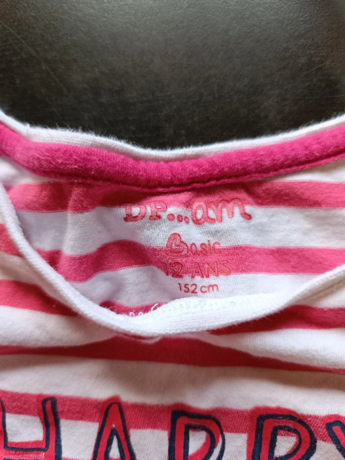 Haut DPAM Esprit marinière Rayé rose & blanc Impression sur le devant Manches longues 100% Coton TAILLE 12 ANS TRES BON ETAT Allez voir mes autres ventes!