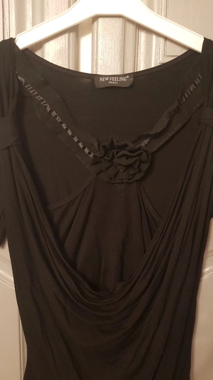 Tee shirt noir avec fleur au niveau du décolleté Très bon état Taille M
