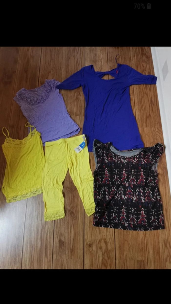 Lot femme taille 38/40 - 3 débardeurs - 1 tee shirt - 1 leggins Très bon état