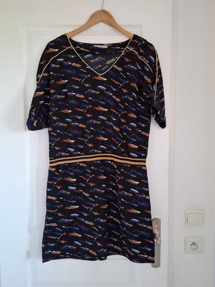 Robe à porter aussi bien l été que l hiver avec des collants L étiquette indique 38 mais je trouve qu elle taille un peu grand donc j indique 40 Longueur : 90 cm Blancheporte