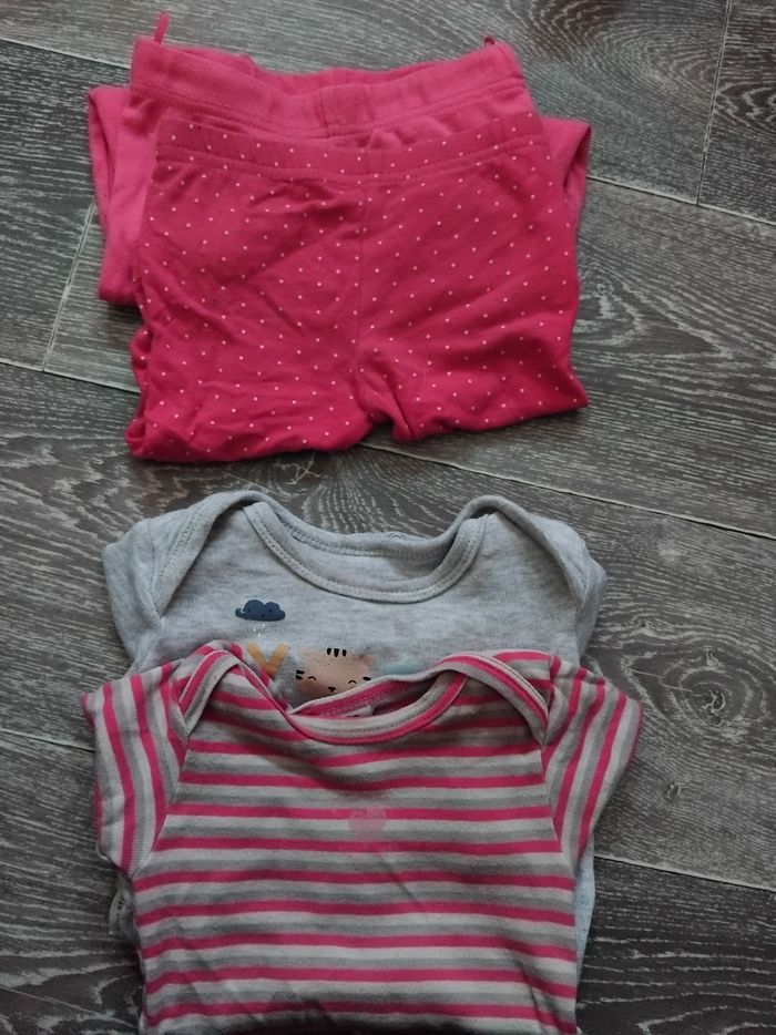 A body manche courte et un manche longue 6 mois et 2 leggings 6 mois également