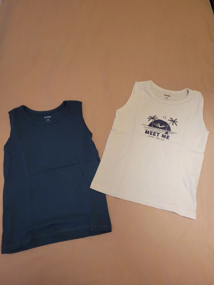 Lot de 2 débardeurs 1 blanc à motifs 1 bleu marine uni #palmier #oiseaux #soleil