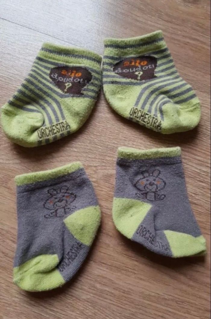 Taille 60 cm. 2 paires de chaussettes 15/16. Marque Orchestra. Très bon état.